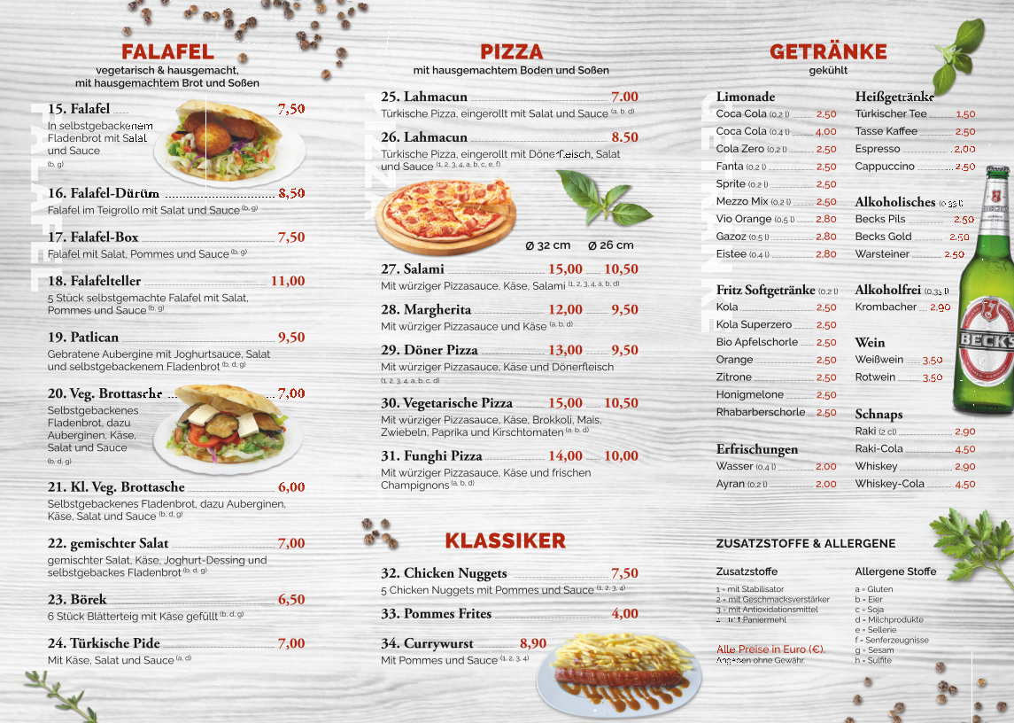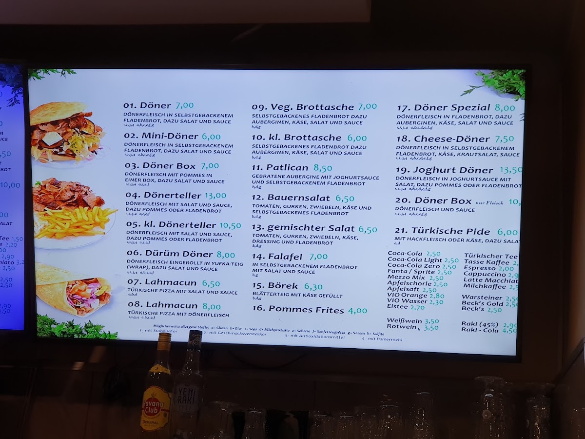 At Pamukkale Türkisches Restaurant, the menu is a delightful exploration of Turkish culinary traditions. Their signature dishes, particularly the döner creations, showcase certified meats served in freshly baked flatbreads or wraps. For just €7.50, you can savor a generous Döner Teller paired with salad and sauce, creating a perfect balance of flavor and freshness. If you’re in the mood for something different, the Döner Pizza merges comfort food with Turkish flair, featuring savory döner atop a homemade pizza base.